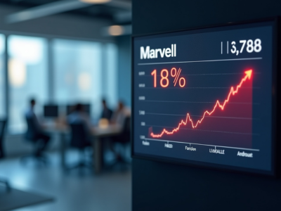The surge in Marvell Technology's stock became the central story, as shares increased by 18% following the company's strong quarterly results. Marvell Technology indicated that accelerating demand for artificial intelligence would drive its business through the next year. The semiconductor manufacturer reported earnings that exceeded expectations and projected faster year-over-year growth in 2027, indicating sustained strength across its AI chip portfolio.