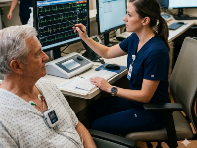 Mobile cardiac telemetry systems are wearable cardiac monitoring technologies designed to track heart rhythm continuously in real time. These systems rely on electrocardiography (ECG) to monitor the electrical activity of the heart and detect abnormalities such as arrhythmias. Typically, a patient wears electrodes on the chest connected to a small portable monitoring device. The device collects ECG signals and transmits the data wirelessly to a monitoring center or healthcare provider.